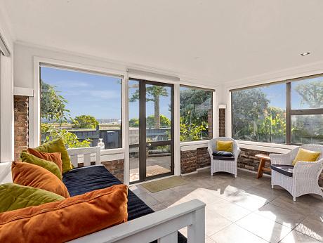 Deceiving from the road, this family sized home offers so much. From the moment you walk in you can see the spacious lounge seamlessly expanding onto the large, sunbaked deck. Awnings give you the shade needed to sit and relax and look at the view. On this top level, the property offers open plan dining and kitchen and there are four bedrooms with a family bathroom plus an ensuite. The internal stairs take you down to a spacious area that could be renovated into a family room with many options and this opens out to a large lawned garden area with established grounds. The integral garage is large and easy to access from the hallway. A bonus for an extended family is a separate bedroom with ensuite which could be used as a home office and is accessed from the front path. Options galore at this residence and well worth viewing if size and views are top of your list.