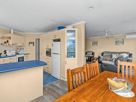 Ever thought of having a quieter life with no traffic jams, no ques and plenty of fresh air? This property might be the solution. A 1960s build that has upgrades with plenty of scope for family living or working from home. Large sunny deck and cleverly designed L-shaped conservatory where people can mingle no matter the weather. A semi open plan kitchen allows for easy conversation during meal preparation plenty of bench and storge space. The adjacent living room has a heat pump or wood fire ensuring comfort all year round. If working from home, there is street access for any customers from the fourth bedroom making it an easy option and leaves you with three further double bedrooms all with built in wardrobes. Under the house a large double garage/workshop and wood storage. The 948 sq m fully fenced section is great for the kids and family pets while still offering further space for a veggie garden, chicken coop or further landscaping