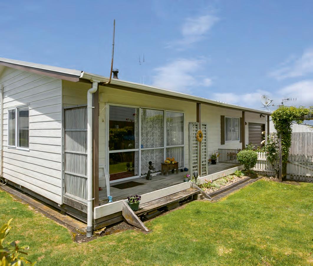Lovingly cared for by the current tenants for the past seven years - a true testament to the enjoyment this home brings. Perfectly positioned on the rear section to ensure the maximum amount of sunlight is received. From the kitchen in the morning to the living areas in the afternoon. You are welcomed to this peaceful place through an archway boarded by fragrant roses and a white picket fence. The true mark of a kiwi home. The main entrance takes you into the open plan living with a free standing fire (with wetback to reduce the electricity bill) and also a heat pump. The highlight of this area is the pitched ceilings with attractive exposed beams also giving a feeling of space. The kitchen with the wrap around benchtop and cupboards is complimented with wooden featured doors. The spacious sized double bedrooms are serviced with a separate bathroom that includes both a bath and shower. The single lock up garage has internal entry.