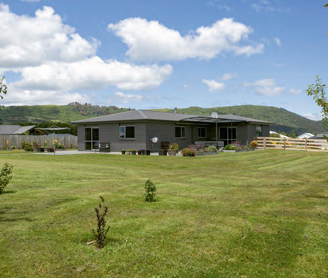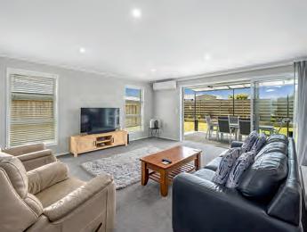 Drive up into a designer garden, with a wildflower wall and well-appointed entryway with enough parking for 3+ vehicles (or the boat). Through the front door you enter the heart of this family home. A large open plan living, dining, and kitchen area working as one. Sun filled from sunrise to sunset the warmth of this spacious home is apparent. A generous heat pump helps for those cooler months. Down the hallway there is plenty of cupboard space on either side, and we have the first of two large double bedrooms with full size wardrobes, with the main bathroom having both bath and shower with a separate toilet. And finally, the large master bedroom with walk-in wardrobe and en-suite. The laundry area is situated in the full-size double garage leading out to the clothesline and side garden. The outdoor entertainment area is sheltered from the prevailing wind and leads up to the well-manicured easy-care lawn. Privacy assured.