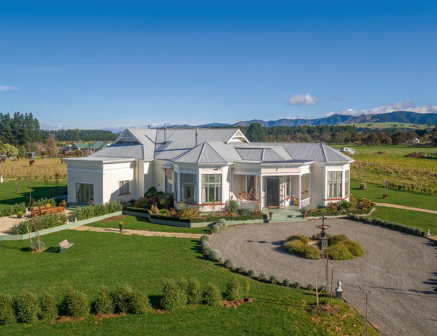 This idyllic historic homestead retreat sits on a 7,364sqm lifestyle block in a stunning Martinborough location, nestled amongst some of the country's most famous vineyards, with award-winning wine at your doorstep. This stunning Edwardian villa was built in Lyall Bay at the turn of the twentieth century. It was moved to its current location in 1999 where it was lovingly restored and now boasts a blend of modern and traditional allure. Three baroque open fireplaces, painted paneling, ornate exterior fretwork and a gracious staircase are renowned features of its era, yet it's firmly entrenched in the 21st century with updated electrical wiring, ducted heat pump system and a modern country style kitchen. The property also features a charming 2 bedroom cottage for guests or home office. By Web www.tremains.co.nz/G24747 2463