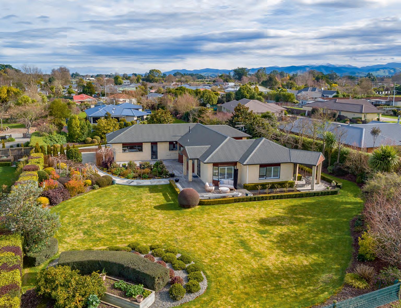 Rural Outlook In Town Here we have a very exciting opportunity for you and your family to come and enjoy this amazing property. Set down a private access lane surrounded by other well presented properties sits this beautiful and modern family home with rural outlook. Boasting 4 spacious bedrooms, large open plan kitchen, dining and living spaces in addition to your separate TV room. The 2 freshly renovated bathrooms including ensuite feature under floor heating, spacious tiled showers and a freestanding bath. The home is heated well with double glazing, 2 heat pumps, great insulation and radiator heaters throughout. Further benefits include a double internal access garage, the beautifully landscaped gardens and multiple decks and patios surrounding the house to make the most of the all day sun. Call Bevan or Anna today to view.