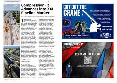 Contributions: Contributions are invited and articles should be emailed to editorial@ trenchless-works.com. No responsibility can be taken for drawings, photographs or written contributions during delivery, transmission or when with the magazine. In the absence of an agreement, the copyright of all contributions, regardless of format, belongs to the publisher. The publishers accept no responsibility in respect of advertisements appearing in the magazine and the opinions expressed in editorial material or otherwise do not necessarily represent the views of the publishers. The publishers accept no responsibility for actions taken on the basis of any information contained within this magazine. The publishers cannot accept liability for any loss arising from the late appearance or non-publication of any advertisement for any reason whatsoever. ISSN 2049-3401