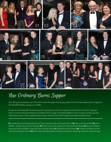Over 200 guests joined the cast of ‘The Kist’ in Fiona Kennedy’s third charity production of the ‘Nae Ordinary Burns Supper’ at The Marcliffe Pitfodels, raising over £18,000. Mr Spence of The Marcliffe commenting that “it was the best ever Burns Supper and the best from ‘The Kist’”. Sponsors had so much fun they have already committed to 2014’s supper at the Beach Ballroom. Fiona is eager to build upon the continuing success in 2014, supporting her chosen charities VSA, F.R.O.M Scotland and Easter Anguston Farm.’