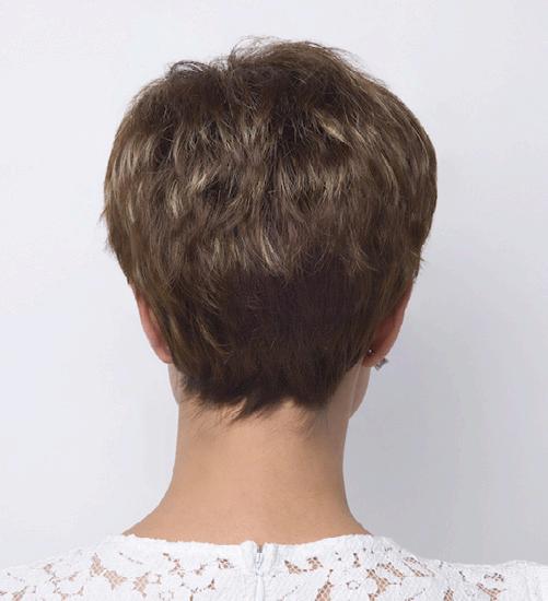 A modern twist to the “pixi cut” with a long side fringe. The machine-made cap is always looking its best with minimal effort.