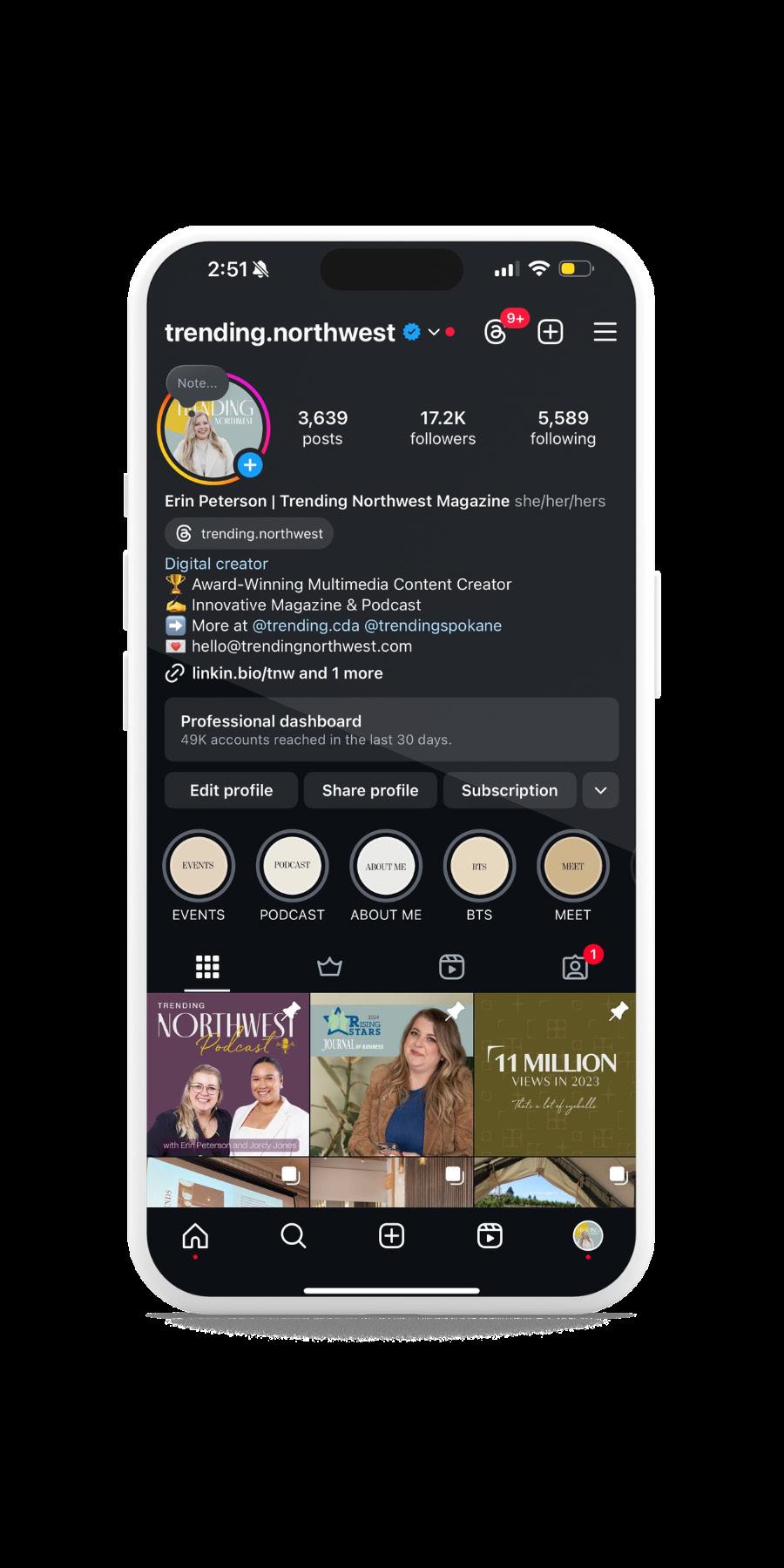 ERIN PETERSON grew up in Post Falls, Idaho and became a professionally certified educator – earning the Provost’s Award for academic achievement and community service from Lewis-Clark State College. Now she is an awardwinning local influencer, podcaster and digital strategy educator with a passion for equity and inclusion. Erin has been published and featured in a wide variety of local publications including the Spokesman Review, The Inlander, and has served as an editor at Spokane Coeur d’Alene Living magazine. If you want to learn more about how she is making an impact right here in the Northwest, give her a follow on Instagram at @trending.northwest or Trending Northwest on Facebook.