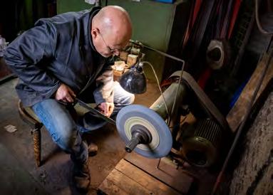 De evolutie van de messenfabricage stond lange tijd haaks op dit functionaliteitsprincipe. Steeds meer grote merken verplaatsten de productie naar China, steeds meer kleinere fabrieken en werkplaatsen sloten de deuren. Het Verre Oosten staat gelijk aan massificatie en standaardisering en dus aan een uitdunnen van het assortiment. Vooral het segment scharen heeft daar sterk onder geleden, met als gevolg dat de scharen voor zeer specifieke doeleinden onvindbaar dreigen te worden. Ook de expertise om die te ontwikkelen en produceren is nagenoeg weg. Dat scenario mag zich bij de messen niet herhalen, vindt Gérard Rinkes. “In de jaren zeventig waren er in Solingen nog tweehonderdvijftig messenproducenten, nu is dat aantal teruggelopen tot circa een tiende daarvan. ‘Jamaar, die Japanse messen dan,’ krijg ik vaak als reactie. Ten eerste komen veel van die messen niet uit Japan maar ook uit China en ten tweede is Japans staal niet geschikt voor veel doeleinden. Het wordt te bot en is slecht slijpbaar. Een goed voorbeeld is de tonijnslachterij die behoefte heeft aan vlijmscherpe slachtmessen,