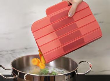 flexibel. Hierdoor schuift de snijwaar moeiteloos in de pan. De onderzijde is antislip. Första, vanaf begin dit jaar exclusief importeur van Trebonn voor de Benelux, heeft voor de ‘Roll’ een advies verkoopprijs gesteld van € 24,95.