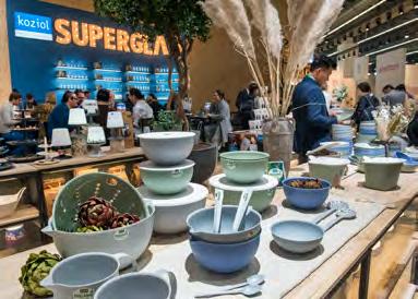 maar kunnen zich er al op voorbereiden. Nog voor ze goed en wel is overgewaaid naar Europa, hebben zij al de nodige planken ingekocht, of bedacht hoe ze de rage zelf kunnen stimuleren. Dat is ook precies één van de redenen waarom Ton van der Kolk, directeur van Kookpunt en KP Import in Rotterdam, graag de Atlantische Oceaan oversteekt. “Het is altijd weer interessant om een antwoord te vinden op de vraag: hoe kookt en eet Amerika? De Verenigde Staten zijn op dat vlak vooral het land van groter en zwaarder. Nergens zijn de koelkasten zo groot. De kalkoenen, de hamburgers, tal van cakes, de steaks niet te vergeten – alles komt van daar. Amerika is ook een prachtige inspiratiebron om na te gaan hoe in grotere gezelschappen eten wordt bereid en gegeten. En als je ideeën opdoet, vind je op The Inspired Homeshow vaak tegelijk een of meer artikelen die daarbij passen. Het gaat ons dan niet om een merk dat net zo belangrijk zal zijn als de niet-Amerikaanse die we al hebben maar om een aanvulling op dat assortiment.”