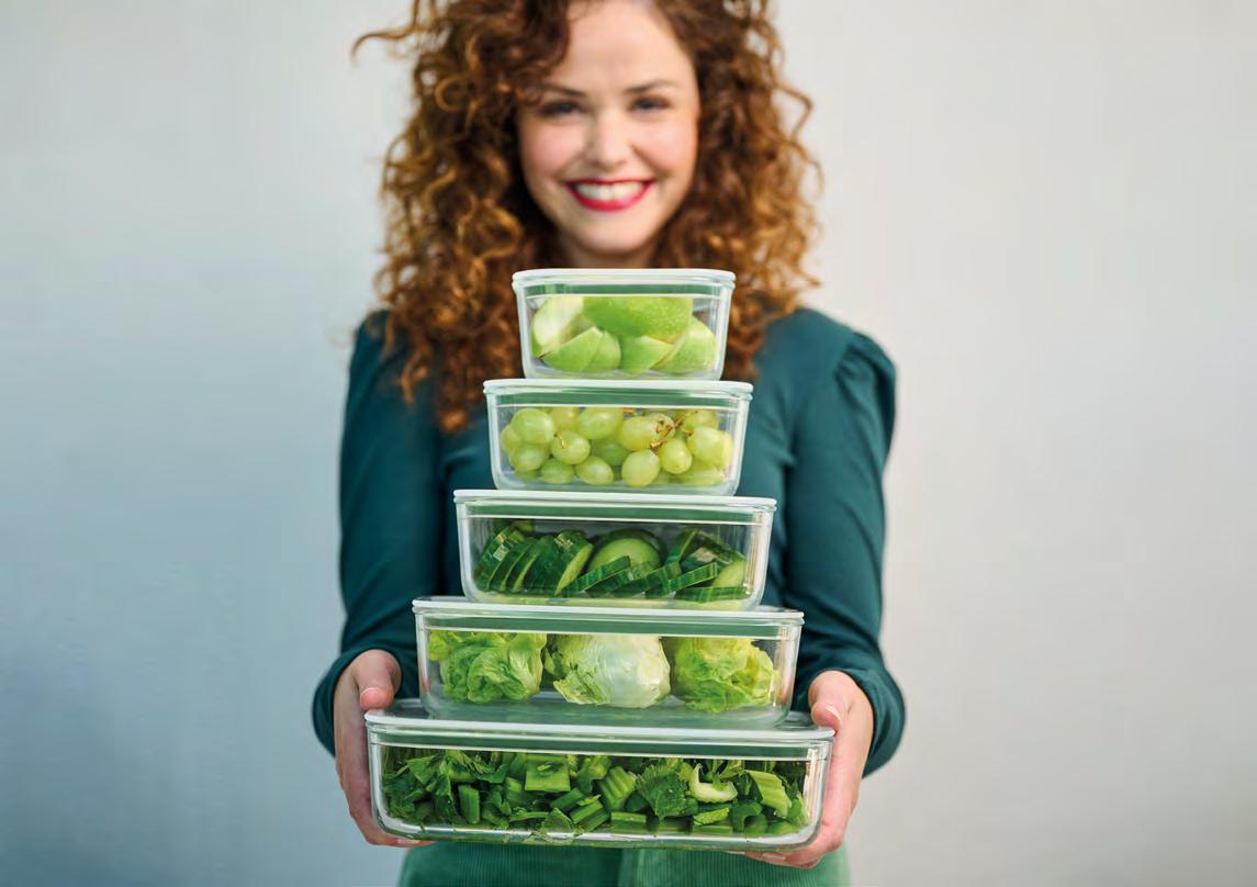 De EasyClip is verkrijgbaar in een kunststof versie en in een van borosilicaat glas, elk in vijf verschillende afmetingen, van 450 tot 2250 milliliter. De dozen zijn perfect stapelbaar, zodat er in de vriezer geen wankele torentjes ontstaan. De glazen variant is ook te gebruiken in de oven en beide varianten zijn geschikt voor stoomoven, magnetron en vriezer en eenvoudig te reinigen in de vaatwasser. Het gebruikersgemak dat zo kenmerkend is voor Mepal beperkt zich dus niet tot de clip zelf.
