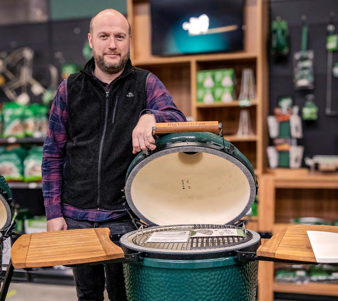 Maar Jeroen Ellegiers is omgekeerd niet verbaasd over de verbazing van zijn klanten. De eenzijdige kijk op het fenomeen buitenkoken heeft volgens hem alles te maken met de manier waarop de barbecue in de markt is gezet. “De barbecue vindt zijn oorsprong in de Verenigde Staten en heeft daar zijn stoere en exclusief mannelijke imago gekregen. Het Amerikaanse merk Weber heeft dat geëxporteerd naar Europa – met veel succes. Weber is een prima merk en ook mijn eerste barbecue was een Weber, die ik van jongs af aan gebruikte wanneer ik maar kon, zodat vrienden en vriendinnen graag bij mij kwamen eten. Maar die keuze van Weber om de barbecue via het tuincentrum aan te bieden, heeft er ook toe geleid dat de verkoop en marketing van het toestel erg product- en merkgeoriënteerd is, terwijl volgens mij de vraag van de consument centraal zou moeten staan. Barbecueën is onderdeel van buitenkoken en dat is veel breder. De trend in buitenkoken komt erop neer dat de consument een steeds groter deel van het jaar in de buitenlucht de maaltijd wil bereiden en er van genieten. Door die oorspronkelijke, Amerikaanse focus blijven we beperkt tot dat beeld van die stevige kerel in dat houthakkershemd. In werkelijkheid is dertig procent van de kopers onderhand al vrouw. Dat percentage zou veel hoger kunnen zijn, als vrouwen niet zo vaak samen met hun man in de winkel zouden verschijnen. Want wat zie je dan? De vrouw blokkeert en laat de man beslissen. Het is het spiegelbeeld van wat je in veel kledingzaken ziet. De vrouw kiest de broeken en hemden uit die de man gaat passen en de laatste zegt zuchtend: ‘Als jij zegt dat het goed zit, is het voor mij okay.’ We zien vrouwen al zonder hun man naar hier komen en dan ontpoppen ze zich tot een veel actiever soort klant dan de passieve die haar man begeleidt. Dan kan er ook een ander type toestel worden gekocht.”
