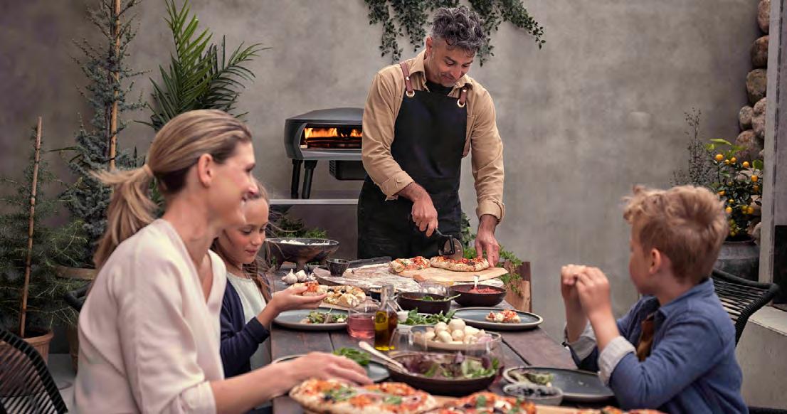 tegelijk in kunt bakken. En vooral: hij is méér dan enkel een pizzaoven of een barbecue. Hij kan alles aan en doet dat zowel snel, zuinig als schoon. Dat perfectioneren van de functies en het design hebben we geleerd van het nabijgelegen Extremis, dat high-end buitenmeubelen produceert, en waarmee we al enkele jaren een samenwerking hebben.”