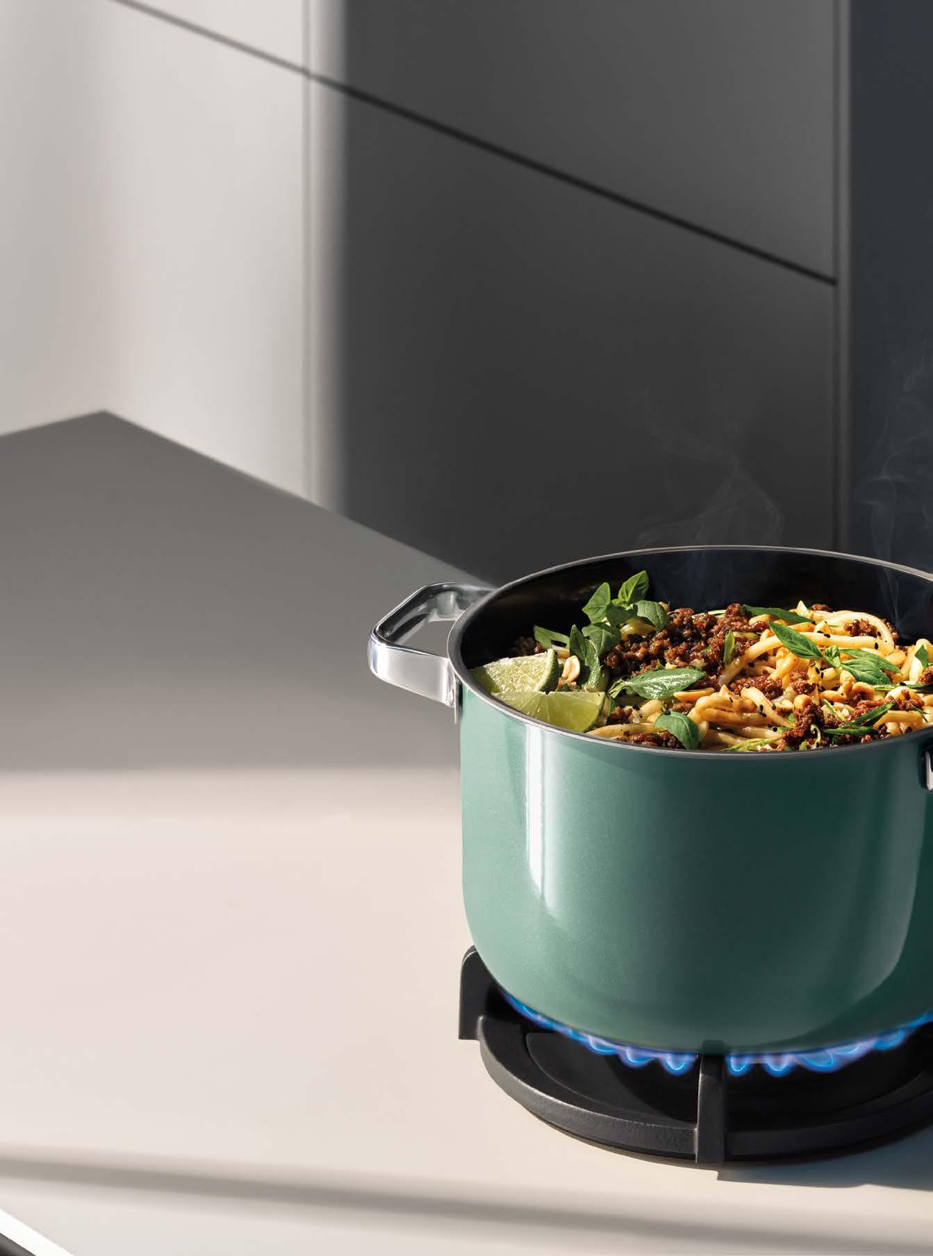 Geweldig koken is niet enkel een kwestie van techniek en kennis. De basis van alles is de juiste pan. De beste pan warmt gelijkmatig op en houdt die warmte vervolgens lang genoeg vast. Dat is precies het pluspunt van WMF Fusiontec ®. Vanaf oktober zijn de vernieuwde Fusiontec 2.0 Mineral Pro pannen beschikbaar: smaakmakers par excellence, dankzij hun uitzonderlijk goede warmtebehoud. Of het nu een langzaam gesudderd stoofpotje is of een snel braadstuk, Fusiontec ® zorgt met de warmte voor het vasthouden van smaak en textuur bij elk gerecht.