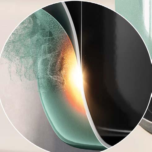 De Fusiontec® pannen zijn gemaakt van twintig natuurlijke mineralen die versmolten zijn met staal. Dit proces zorgt voor een extreem hard, krasbestendig en glad oppervlak dat jarenlang meegaat en de warmte goed geleid.