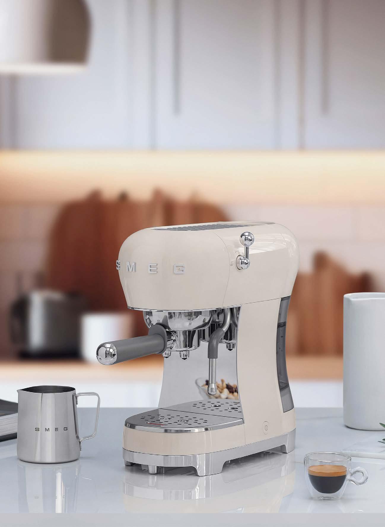 Met de nieuwe ECF03 Espressomachine brengt SMEG deze ervaring naar elke keuken, maar zónder wachttijd. Dankzij een innovatieve extractiemethode kan nu een verfrissende Cold Brew worden gezet in enkele minuten, naast de klassieke espresso’s en cappuccino’s. ’s Ochtends een krachtige espresso en ’s middags een verfrissende Cold Brew - allemaal met hetzelfde apparaat. De ECF03 combineert bovendien een professionele RVS portafilter (58 mm), een stoompijp voor melkopschuimen, een drukmanometer en een solide, retro 50’s Style design. Zo wordt koffiezetten niet alleen een ritueel, maar ook een belevenis.