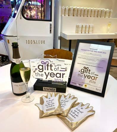 ‘Bedankt voor de Helpende Handen’ De jury bestond uit Lot Louisa, social-media-expert, tevens voorzitter, vakjournalisten Anna Hutten en Patricia Akkermans en de hoofdredacteur van uw eigen vakblad, Trend. Als juryleden werden we vooral getroffen door drie producten die je als echte gifts kon beschouwen, namelijk als een geschenk voor een ander. Tegenwoordig zijn er al te veel ‘geschenkjes voor jezelf’, voor de ‘me-time’, en het zou gerust kunnen dat die aandacht voor de eigen welbevinden een beetje over zijn hoogtepunt heen is. Duurzaamheid slaat bovendien niet enkel op materiaalgebruik maar ook op het intermenselijke. Daarom vonden we ‘Bedankt voor de Helpende Handen’ het winnende product. Dit handmasker met verzorgende werking is een passend geschenk voor iedereen die je heeft geholpen, letterlijk met een verhuizing of figuurlijk met een steunend gebaar. Met een prijs van nog geen vier euro is het bovendien geschikt voor een brede doelgroep en handig als impulsartikel
