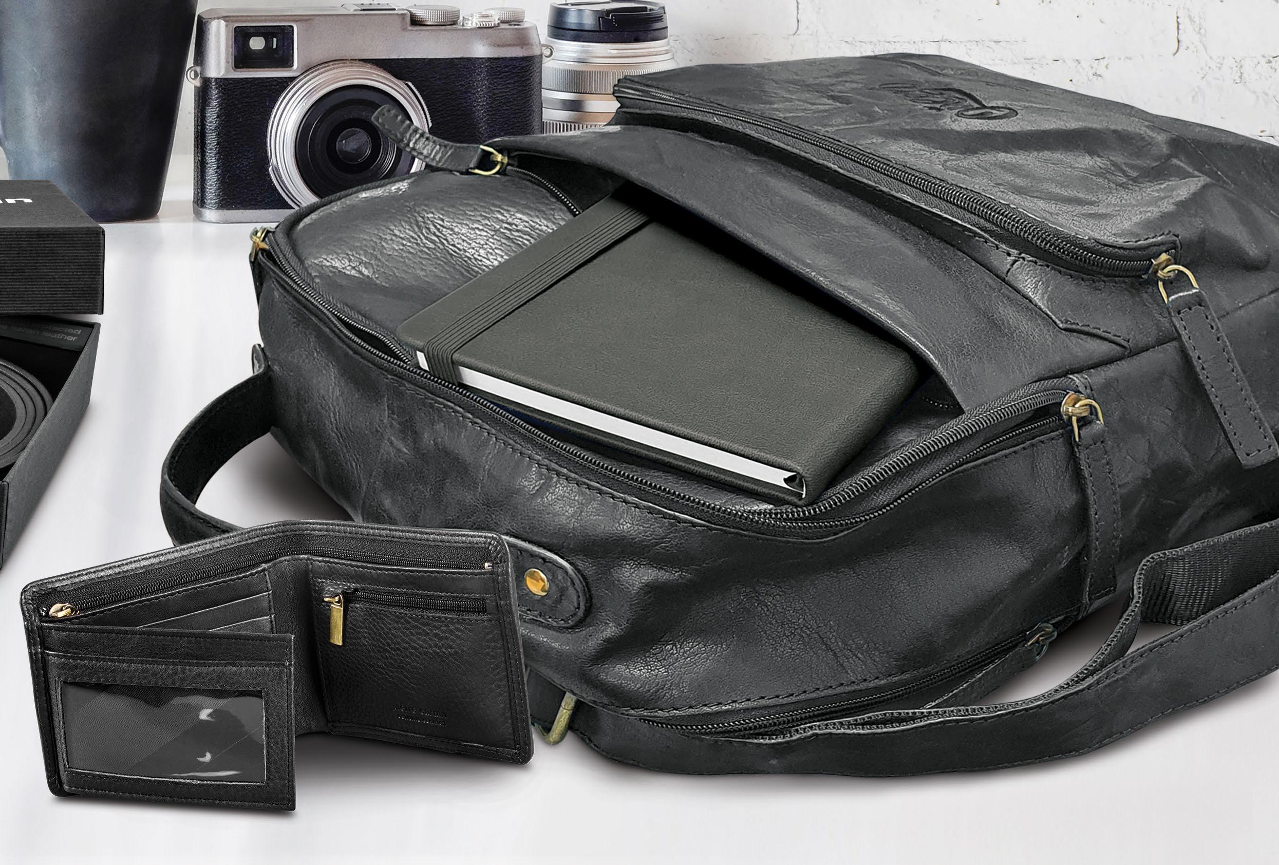 Smart medium-sized portfolio which is manufactured from stylish PU. It has a notebook with 60 leaves (120 pages) of lined white paper. The front cover has two slip pockets one of which will hold most smartphones. Other features include a magnetic closure, a large internal slip pocket, four card sleeves including a card window and a pen can be kept in the spine.
