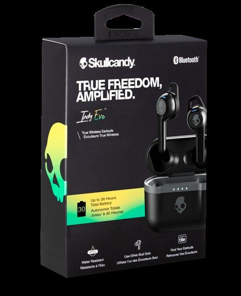 A performance and lifestyle brand driven by creativity and youth culture, Skullcandy creates modern audio accessories for those who live and breathe music. The Indy Evo are a fierce alternative to precious, overpriced earbuds, providing high-quality sound at a competitive price point with four listening modes available. The earbuds will play for up to six hours, and the case holds up to 24 hours of charge, with a rapid charge function available for fast charging on the go. Intuitive touch controls mean that calls, volume and audio tracks can easily be controlled. The buds can be used as a pair or individually and are IP55 sweat, water and dust-resistant. Tile technology means the case can be tracked and found easily if misplaced. The Indy Evo earbuds feature the Skullcandy logo on the case and each earbud and are presented in Skullcandy packaging. Please note the branding on the packaging is subject to change without notice, and this product cannot be supplied unbranded or without the Skullcandy branding.