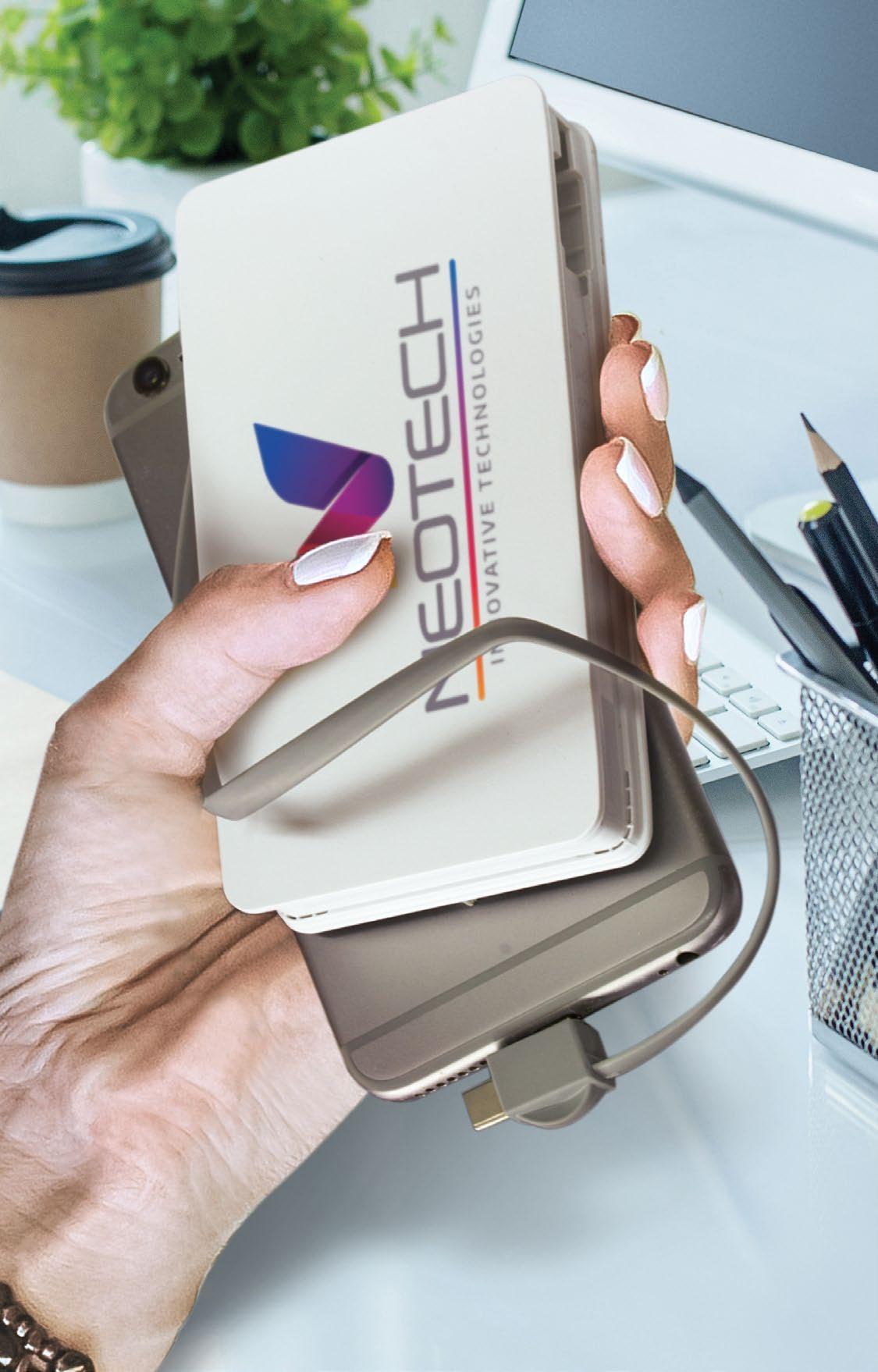 State-of-the-art 5W wireless charging power bank that can charge two devices at once. It will charge devices that are enabled for wireless charging simply by placing them on top of the power bank. It also offers conventional charging for almost any phone with a wraparound cable that fits neatly into the housing. It has a Type-C connector and a unique double-sided connector with Lightning on one side and Micro-B USB on the other. The cable is also used for recharging the power bank from a USB port or a mains adaptor. Jarvis has 5000mAh of power storage, an input power of 5V/2A and an output power of 5V/2.4A. It is presented in a white box with an instruction leaflet and an optional EVA carry case is available on request. Please note that some phone cases may affect the wireless charging connection.