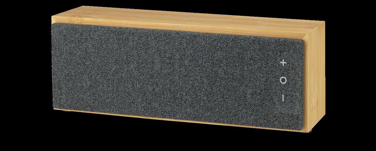 5W or 10W Bluetooth speaker which is compatible with most mobile devices that support Bluetooth. Manufactured from bamboo with a heather polyester front, Sublime is the perfect addition to any setting. It has a wireless connectivity range of over 10 metres and a playing time of approximately 6 hours depending on the volume. It is easily recharged from a laptop, a power bank or a USB mains adapter and it is supplied with a Micro-B USB cable and an instruction leaflet. Bamboo is a natural material which produces unavoidable variances in the grain pattern, colour and branding. The speaker is presented in a kraft cardboard gift box.