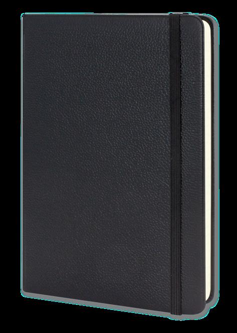 The Moleskine Classic Notebook is the heir and successor to the legendary notebook adopted by artists and thinkers over the past two centuries, used today by contemporary creatives. It is a reliable travel companion, perfect for capturing thoughts and ideas on the move. The classic hard cover A5 notebook features 120 leaves (240 pages) of 70g/m² Moleskine ivory-coloured lined paper with rounded edges, a bookmark ribbon, and an elastic closure for privacy. Unlined, grid, and dotted layouts are available in the black notebook. The expandable back pocket provides space for storing notes throughout the day and includes the history of Moleskine. A customizable ‘In case of loss‘ notice is printed on the first page, while the Moleskine logo is subtly debossed on the back cover and printed on the inside front cover. Please note this product cannot be supplied unbranded or without the Moleskine logo. Moleskine reserves the right to decline any custom project or artwork that does not align with their brand on a caseby-case basis.