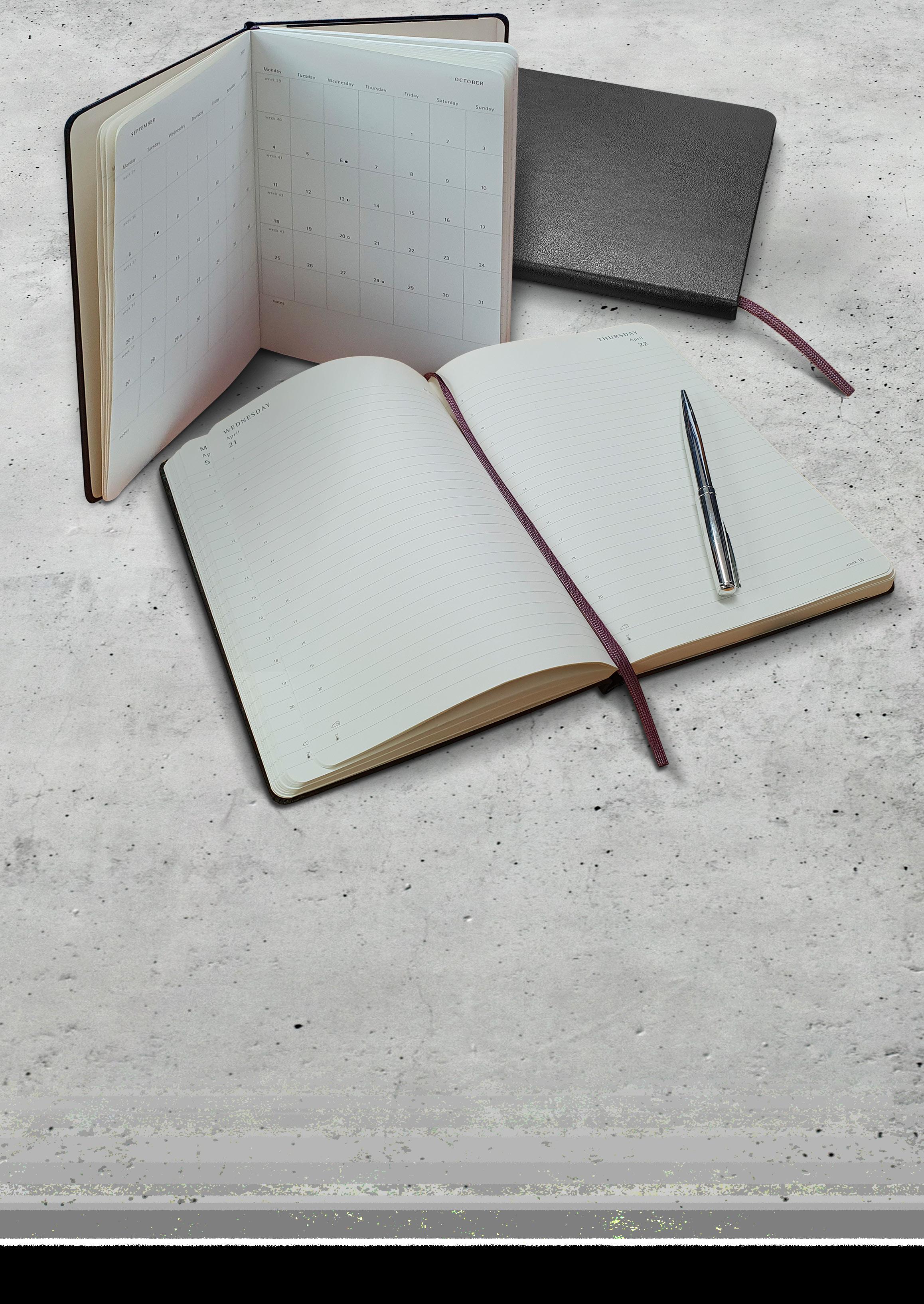 118682 - Weekly 118683 - Daily The Moleskine 2022 Daily and Weekly Planners give you the freedom to plan out every day in minute detail or gracefully balance week-by-week planning with note-taking. Dated from January to December 2022, these elegant planners provide plenty of space to record events, appointments, to-dos, reminders and plans. The opening section displays the whole year at a glance before showing a month-by-month breakdown. The intro pages also include useful information such as international time zones, as well as different measures and conversions around the world and a 20cm ruler. The classic hard cover A5 planner features ivory-coloured paper with rounded edges, a bookmark ribbon, and an elastic closure for privacy. The expandable back pocket provides space for storing notes and includes the history of Moleskine, as well as three pages of adhesive flags for marking important dates and events. A customizable ‘In case of loss‘ notice is printed on the first page, while the Moleskine logo is subtly debossed on the back cover and printed on the inside front cover. Please note this product cannot be supplied unbranded or without the Moleskine logo. Moleskine reserves the right to decline any custom project or artwork that does not align with their brand on a case-by-case basis.