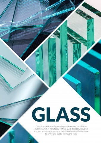 GLASS Glass is an aesthetically pleasing and extremely sustainable material which is manufactured from sand. It is easily recycled and has become an environmentally-friendly natural alternative to single-use plastic bottles and cups.