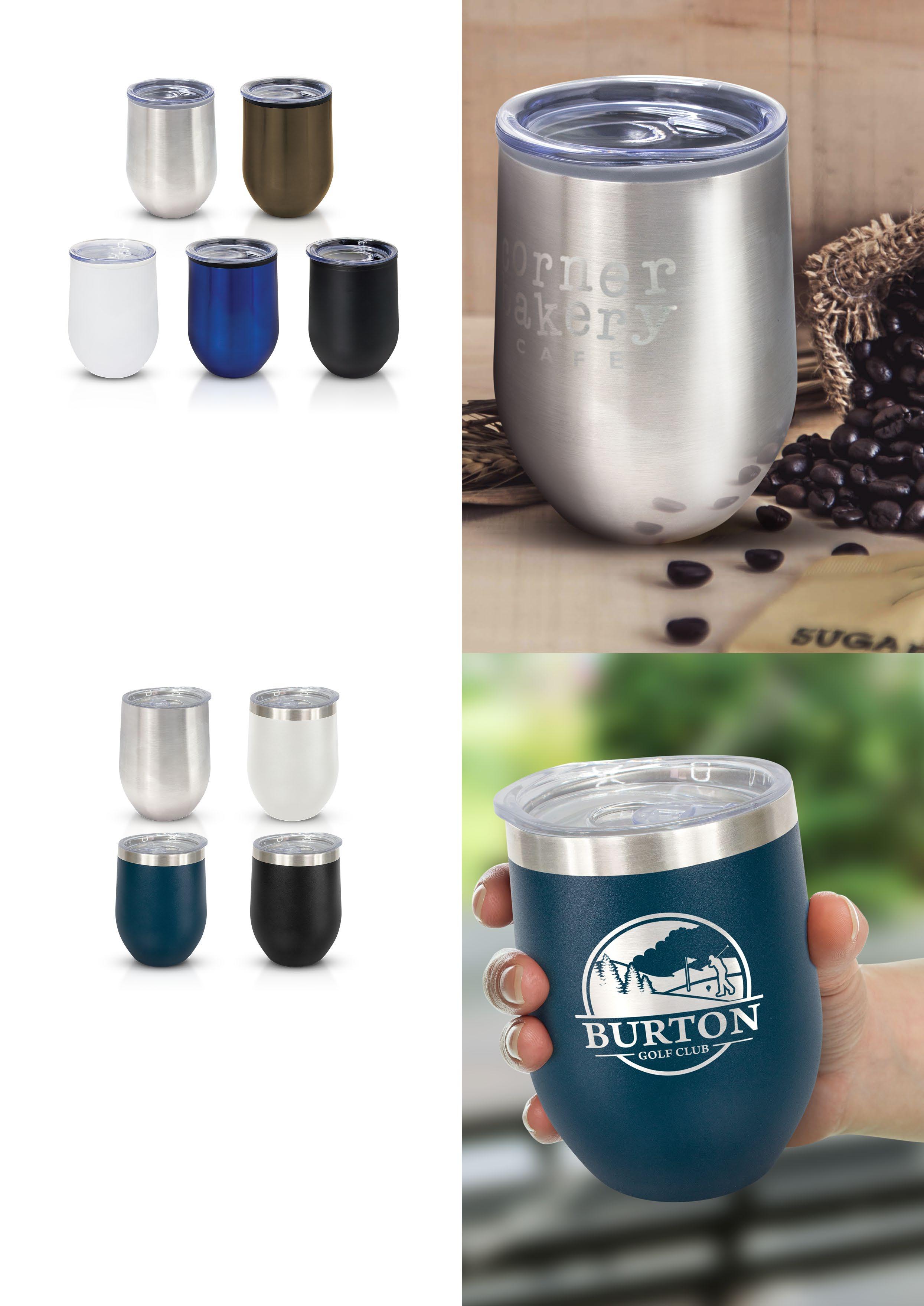 Smart 300ml double wall, vacuum insulated stainless steel coffee cup with a timeless curved design and a stunning powder coated finish. It will keep drinks hot or cold for hours and has a transparent push on lid with a sliding closure. Cordia laser engraves to a shiny steel finish. The silver cup does not have a powder coating and laser engraves to a natural etch. The cup is BPA-free and is presented in a black gift box. This product is not dishwasher safe and handwashing is recommended.