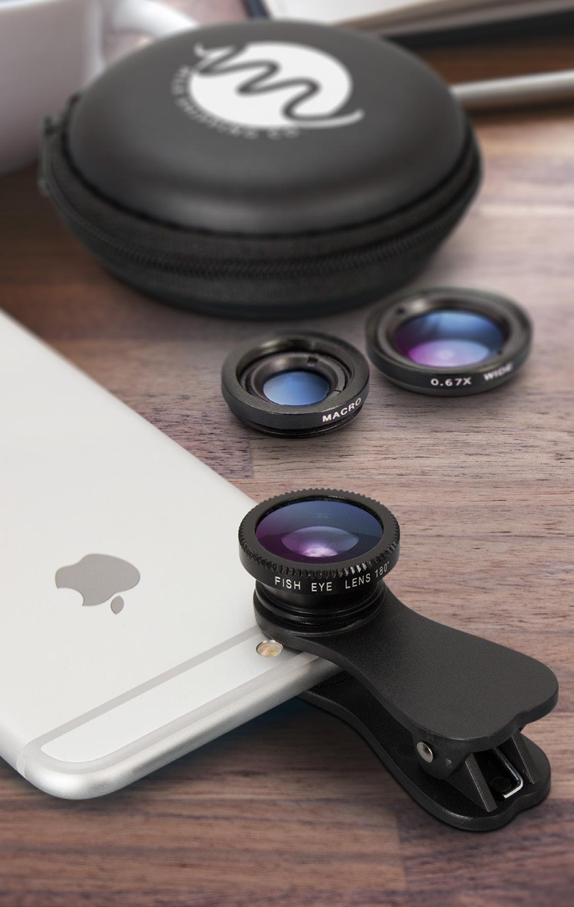 • 180 degree fisheye lens, .67 wide angle lens and macro lens
