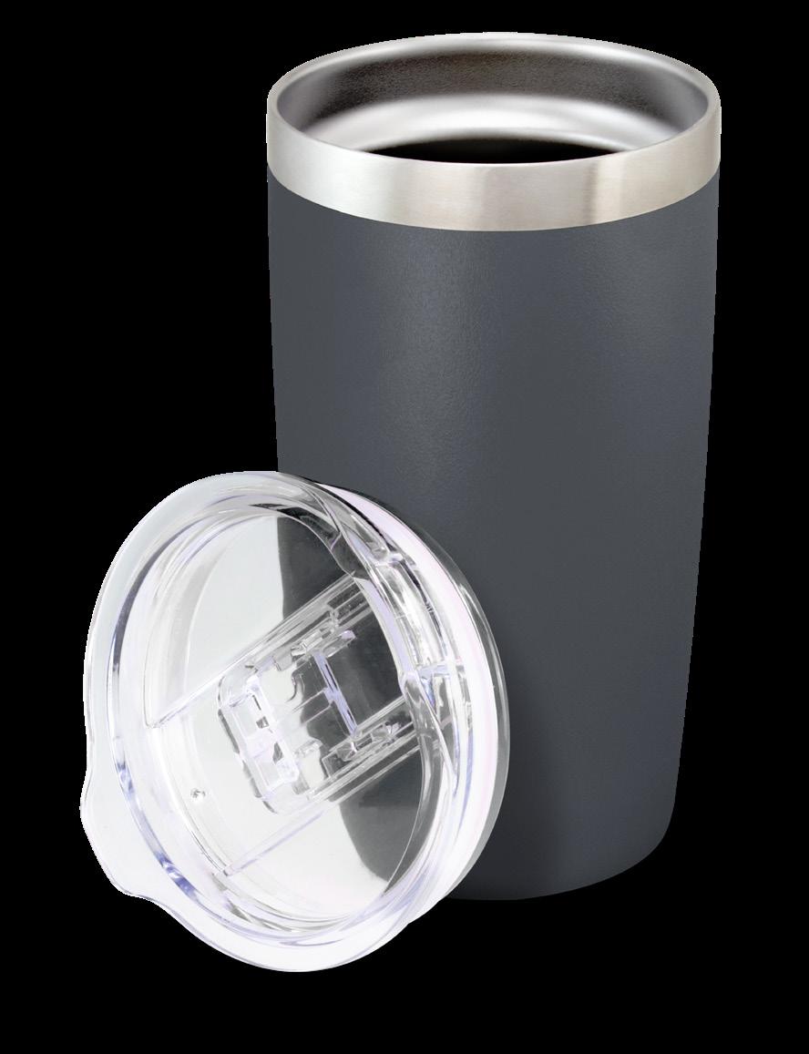 • Lid features two drinking options: a flip valve with a straw and a flip closure