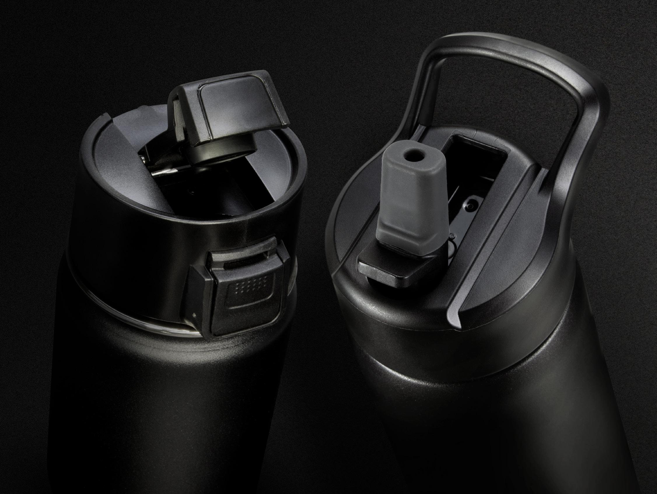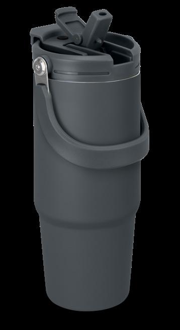• Lid features two drinking options: a flip valve with a straw and a flip closure