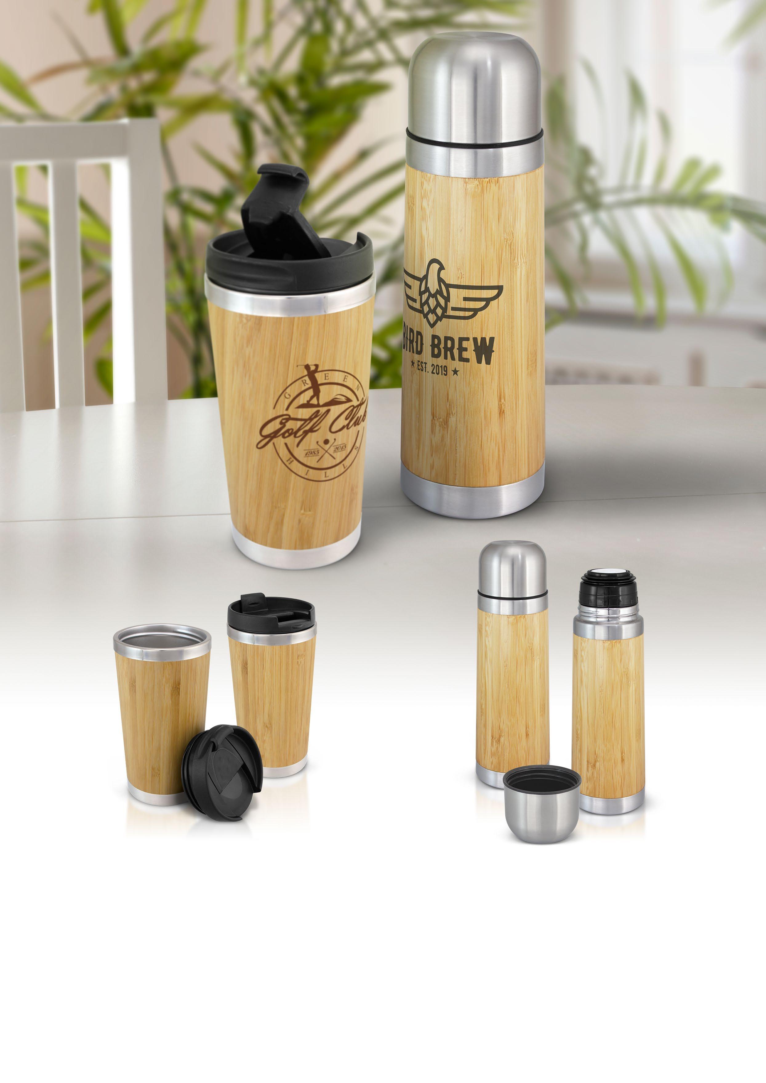 Make a statement with this 500ml, nature-inspired double wall flask which has a genuine bamboo outer wall. It has a stainless steel inner wall and its own screw on cup with a smart stainless steel finish. The flask will keep drinks hot or cold for longer and has convenient push button operation. It is BPA-free and is presented in a black gift box. This product is not dishwasher safe and handwashing is recommended. Branding Options: • Pad Print • Screen Print