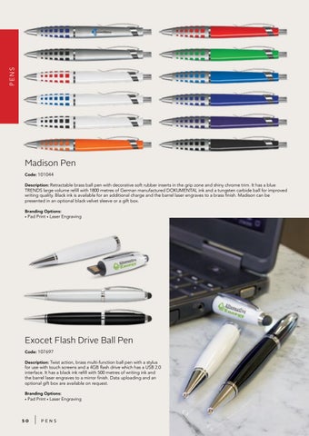 Exocet Flash Drive Ball Pen Code: 107697 Description: Twist action, brass multi-function ball pen with a stylus
