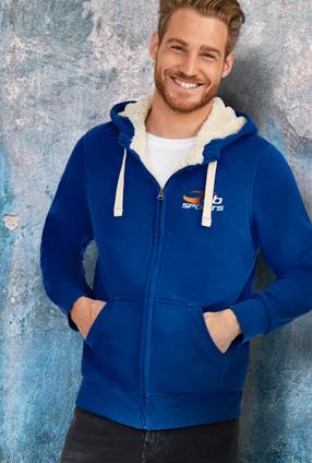 • Stylish 280gsm, unisex adult sweatshirt with a full zippered front and a soft sherpa lining. It is manufactured from an 80/20 blend of ring-spun cotton and polyester