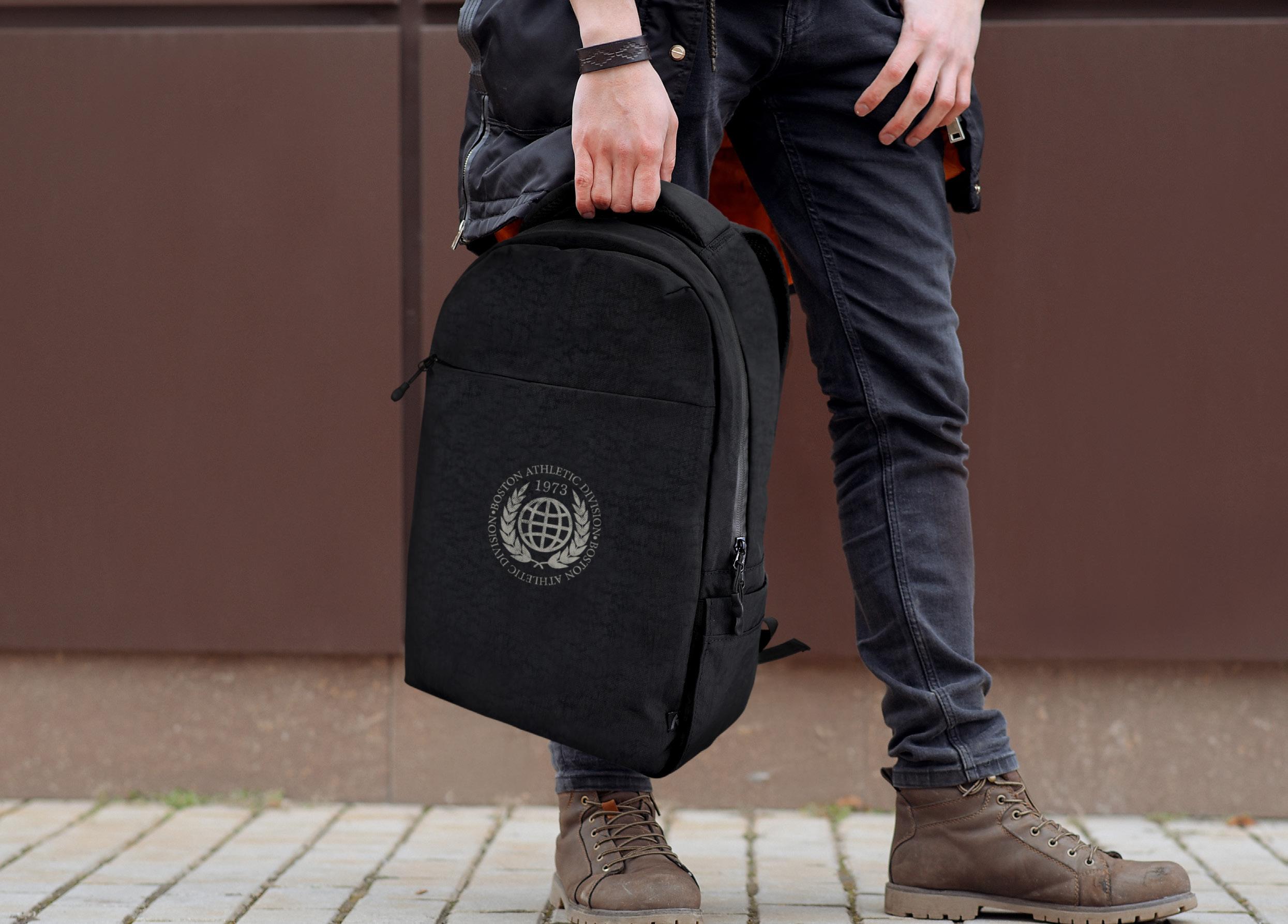 • Prominent leather-look PU patch for branding