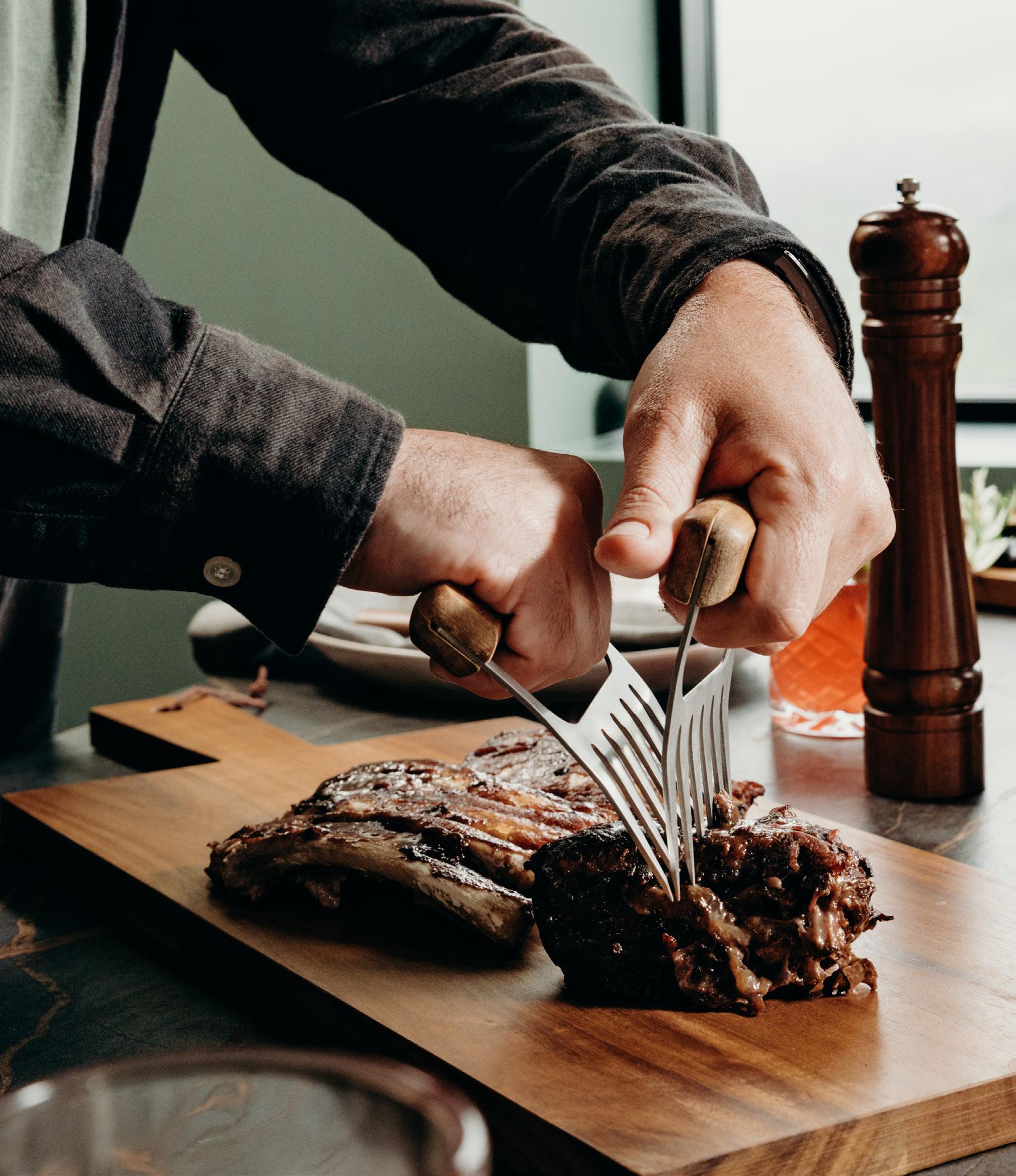 • Acacia wooden handles for easy grip
