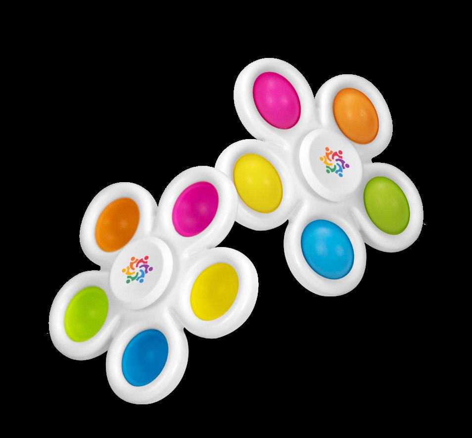 • Combines the popular fidget spinner with a popper board