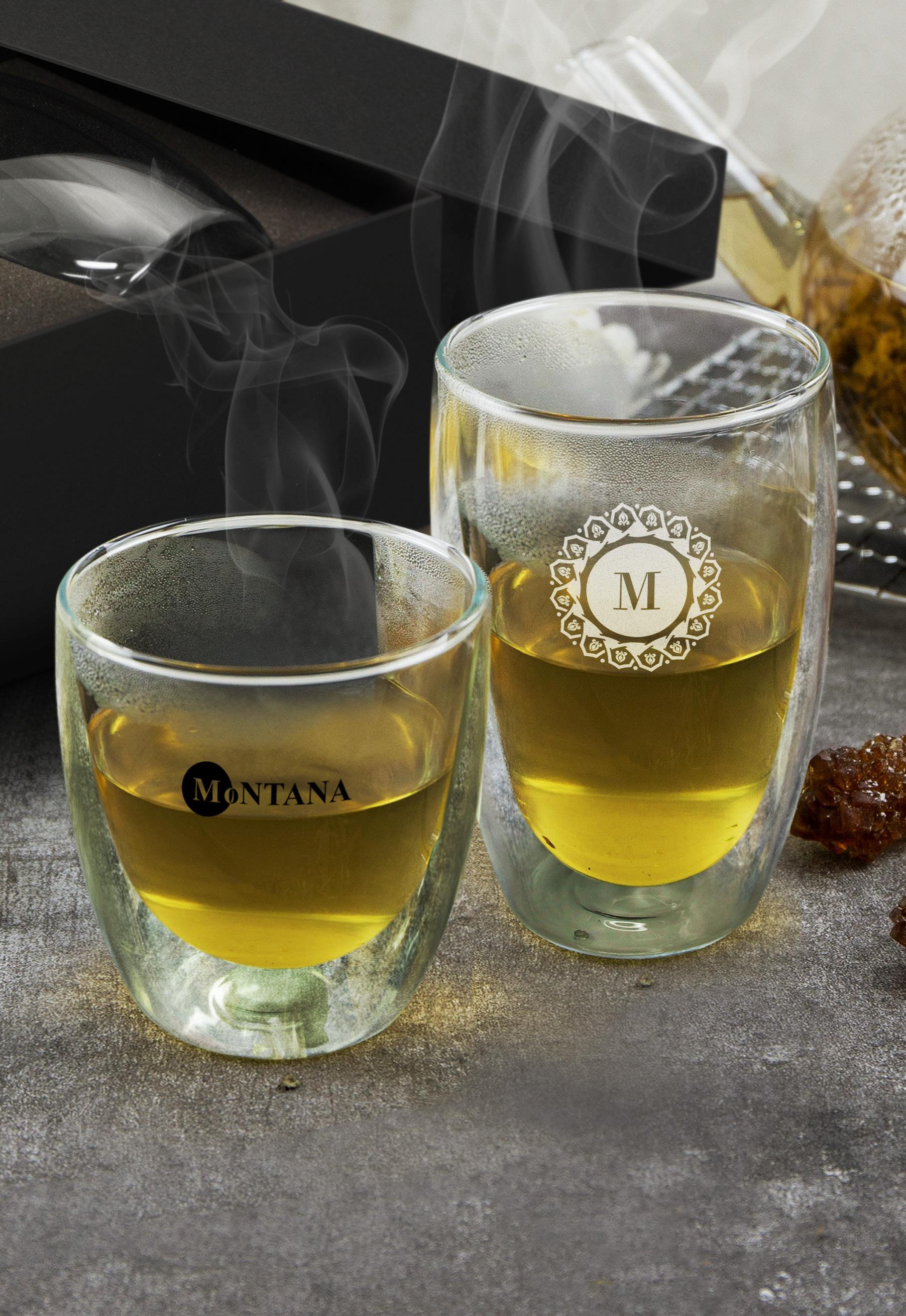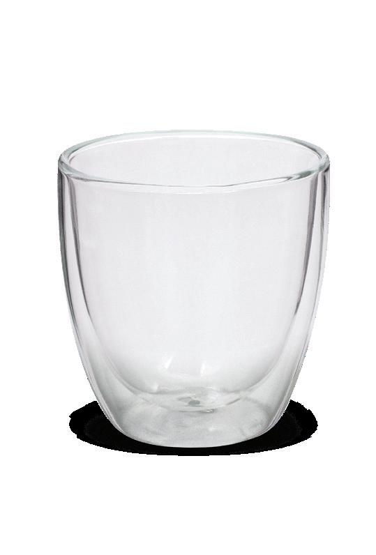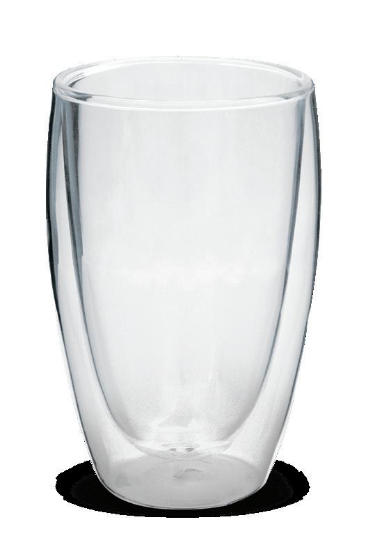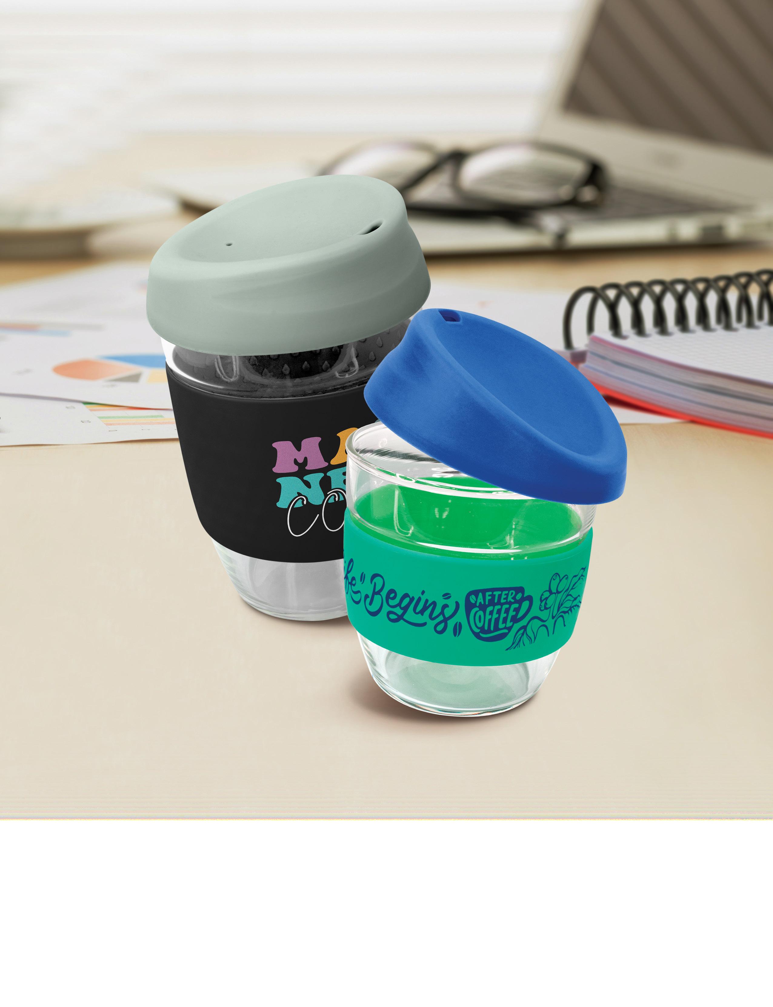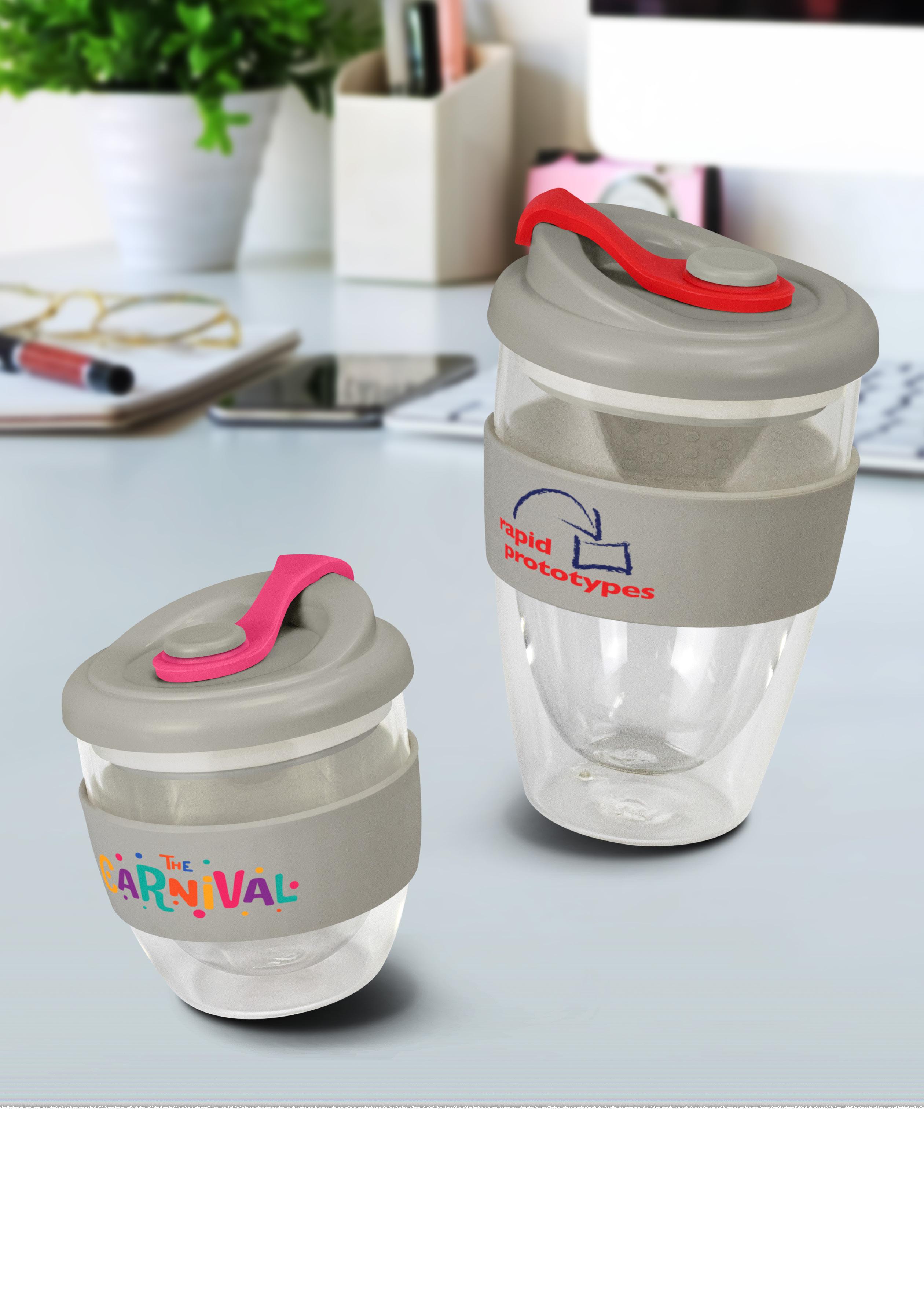 • Double wall glass coffee cup with a heat-resistant silicone band