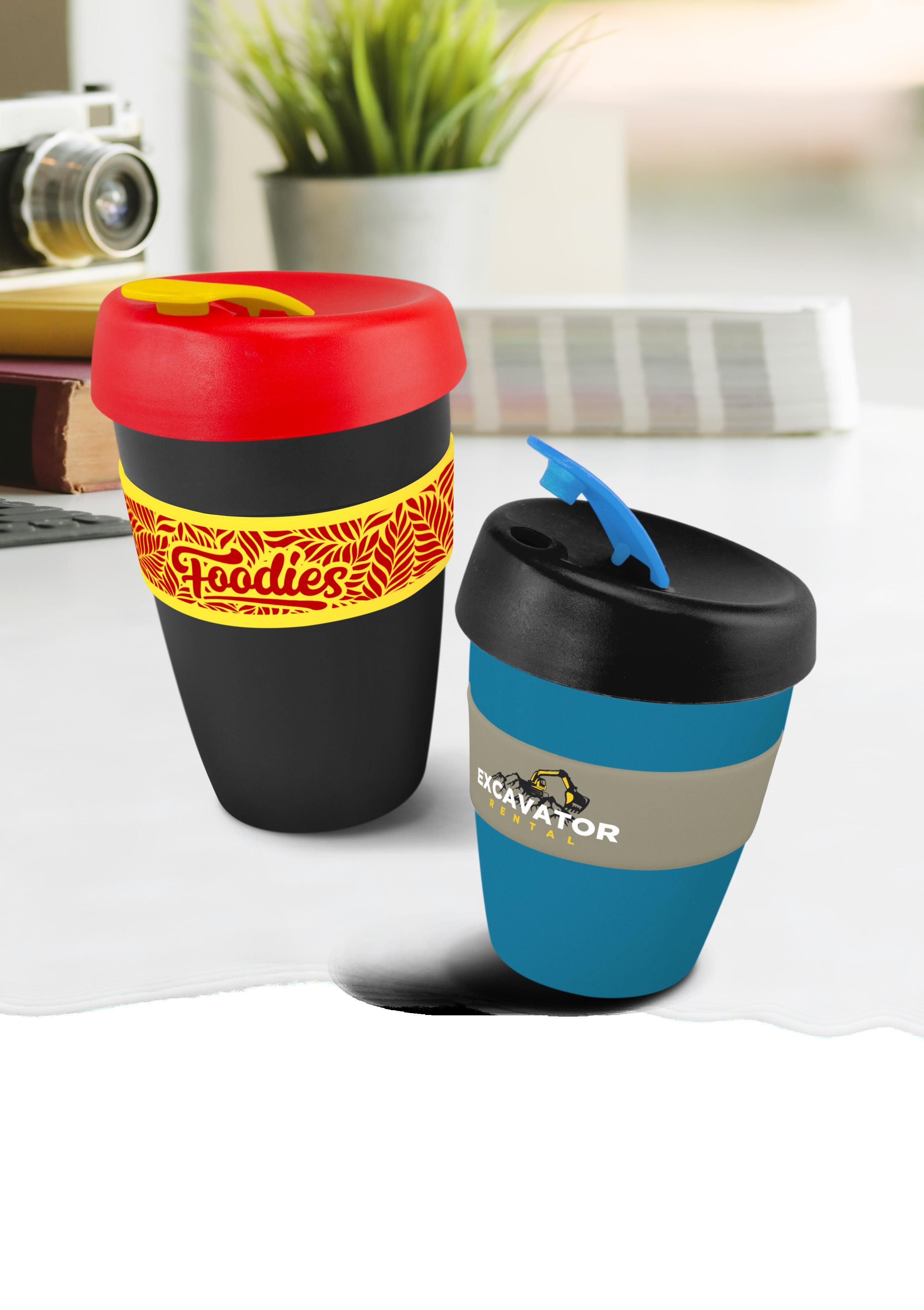 • 350ml coffee cup made from 50/50 blend of natural rice husk and BPA-free polypropylene