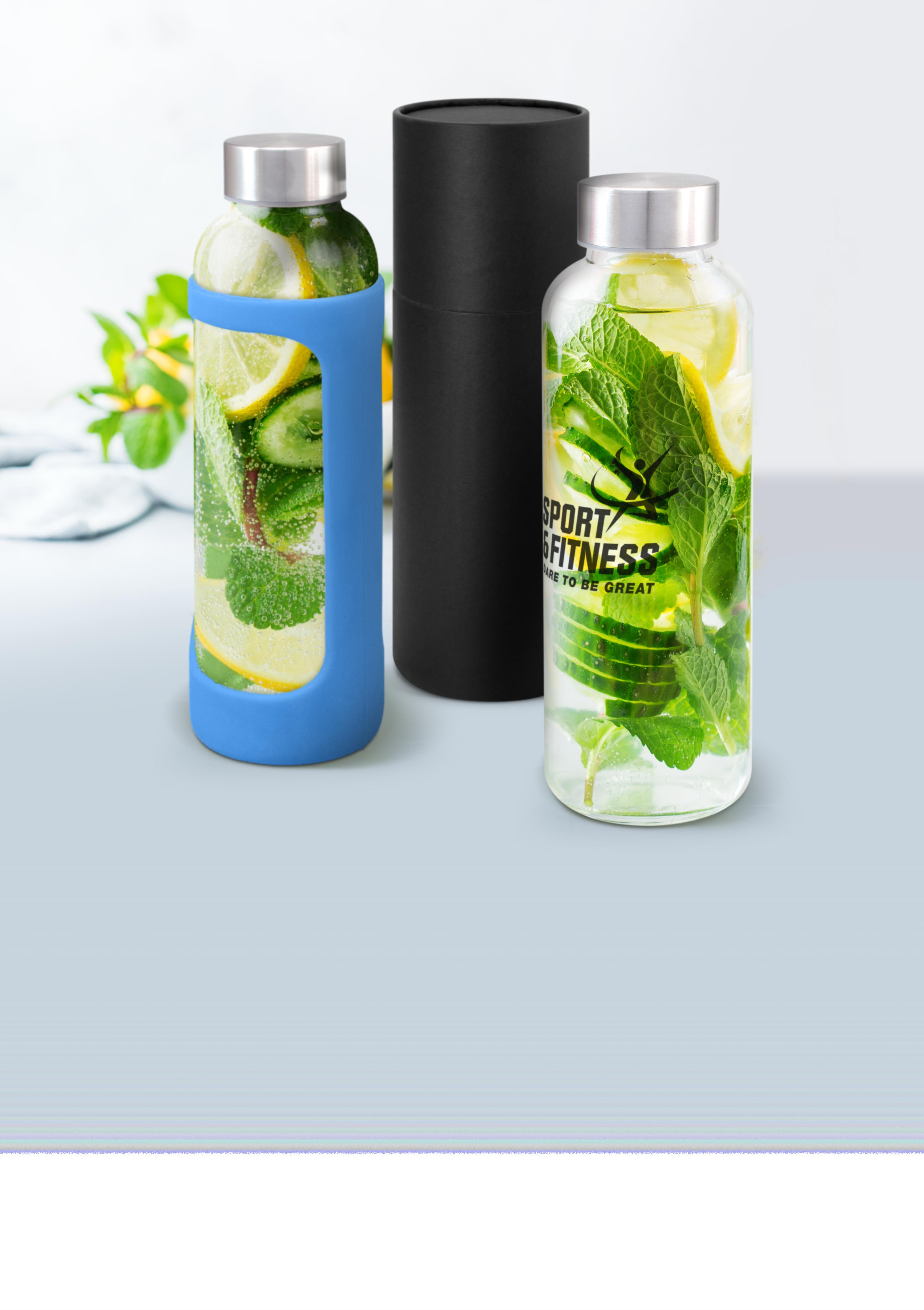 • Deluxe 600ml glass bottle with screw on stainless steel lid
