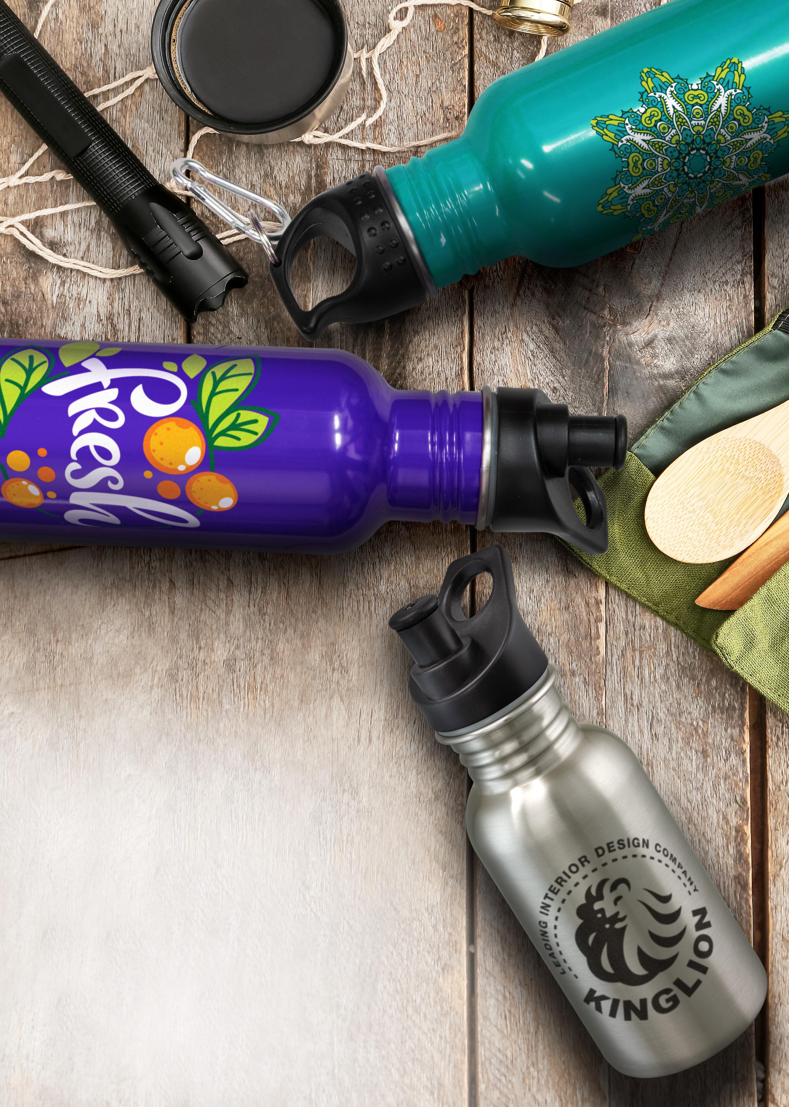• Lightweight 600ml aluminium bottle with a shiny painted finish