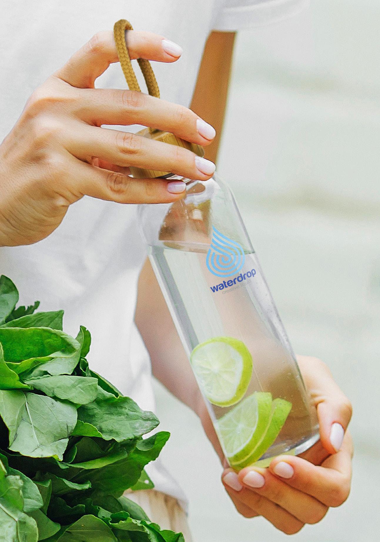 • Deluxe 600ml glass bottle with screw on natural bamboo lid