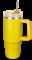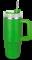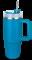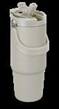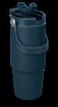 • Lid features two drinking options: a flip valve with a straw and a flip closure
