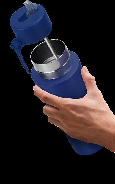 • Secure screw on lid with a polypropylene slider and stainless steel straw