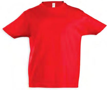 110659 Superb kids t-shirt which is cut and sewn for sizes 2-6 years and tubular from 8 years onwards. It features an elastane ribbed round collar with neck tape reinforcing and short sleeves. Imperial Kids is available in six sizes and is manufactured from 190gsm heavy jersey, semi combed ring spun cotton. This gives the garment a soft and smooth feel as well as providing an excellent branding surface. Colours:
