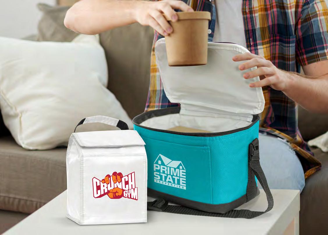 111755 Personal 4.2L cooler bag which has a stylish retail inspired design and is ideal for lunches. It has thick PE foam insulation encased in a waterproof PEVA liner and the outer construction is rugged 600D polyester with a handy slip pocket on one side. Frost has a zippered main closure and the carry handles, pocket and top are reinforced with binding. Colours:
