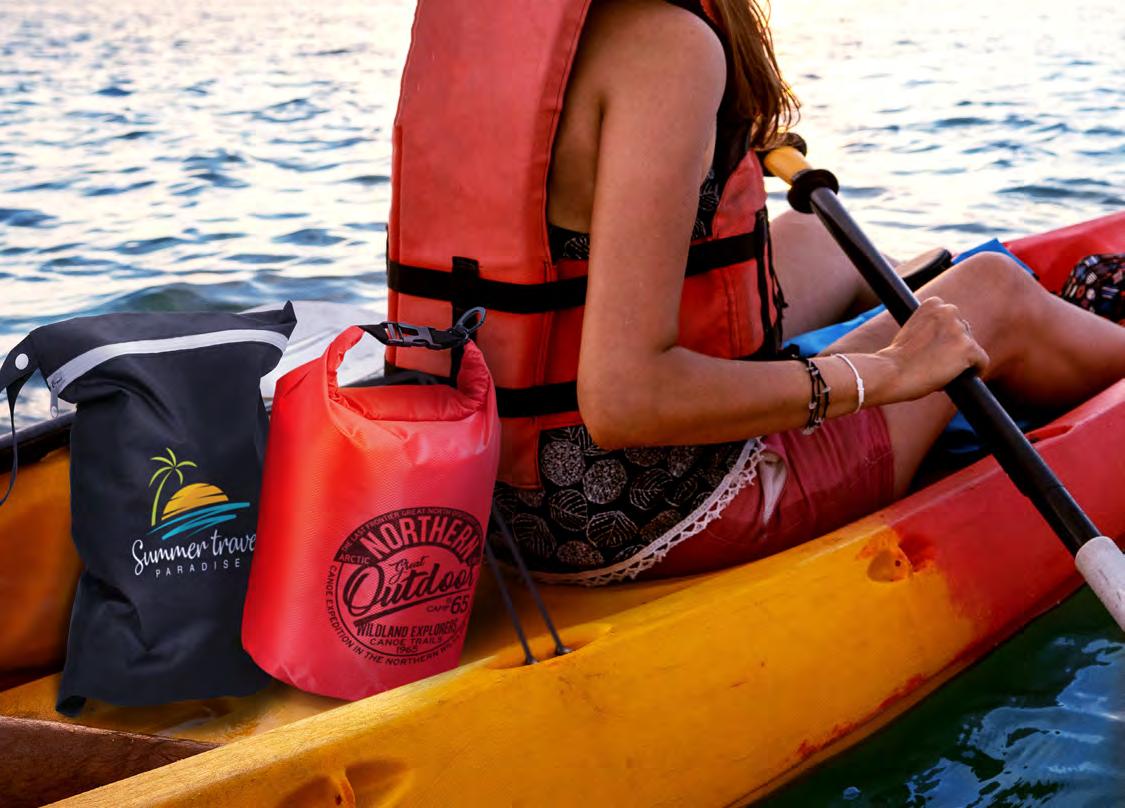 112979 Dry bag with heat-sealed waterproof seams. It is manufactured from robust 210T laminated nylon grid cloth. Simply roll down the top closure several times and close it with the snap lock for a waterproof seal. It is ideal for storing valuables and electronic devices in the outdoors and around water.