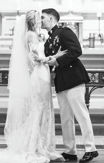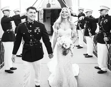 • The newlyweds departed the ceremony under a Sword Arch, a proud Marine Corps tradition.