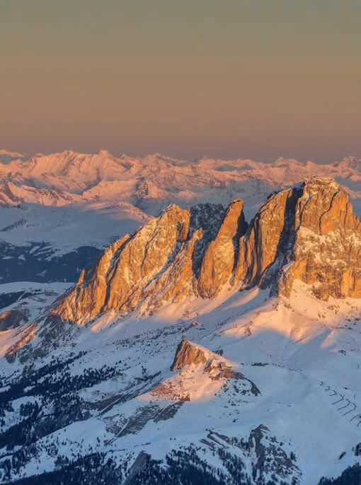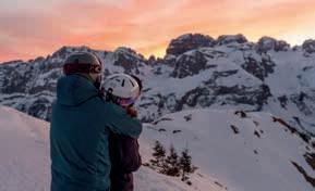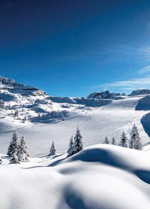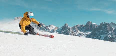 Le montagne del Trentino sono il luogo privilegiato in cui potersi muovere tra spazi sicuri, all’ombra delle grandi foreste e delle vette dolomitiche. Dodici zone sciistiche, distinte per varietà e livello di dif coltà delle piste, 1.200 km di percorsi, 450 impianti di risalita e 800 km di piste da discesa, con impianti di risalita attuali innovativi e veloci in grado di abbattere i tempi di percorrenza, e confortevoli rifugi lungo le piste con accoglienti e soleggiate terrazze panoramiche. Questo è il cuore di un’offerta tra le più avanzate e complete dell’arco alpino, con un’età media di