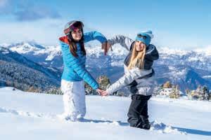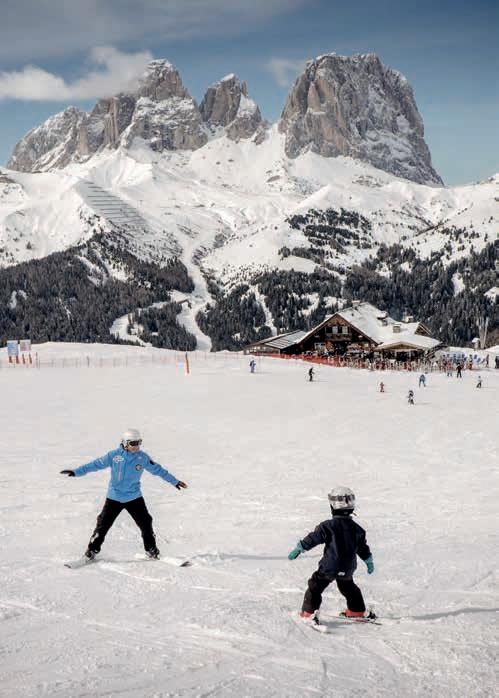 pagano gli adulti, mentre gli adolescenti no a 16 anni hanno il 30% di sconto Poco lontano dalle destinazioni sciistiche più famose, in Trentino si trovano anche ski area minori, particolarmente indicate per chi inforca gli sci per la prima volta: impianti a misura di bambino, piste ampie, poco affollate, assolate e sicure, con maestri di sci competenti che sapranno guidare con attenzione e dolcezza le prime discese dei più piccoli su piste adatte per fare pratica. Oltre 2600 maestri sono a disposizione per quanti vogliono migliorare la propria tecnica, un “piccolo esercito” distribuito tra le 48 Scuole Sci. Per divertirsi sulla neve anche senza gli sci ai piedi ci pensano, in ne, i numerosi Baby Park dove i bambini possono trascorrere ore spensierate in assoluta sicurezza, sempre seguiti da personale specializzato. Organizzati direttamente dalle Scuole sci, i servizi di Kindergarten consentono di af dare i più piccoli in modo da consentire ai genitori qualche ora di svago sulle piste.